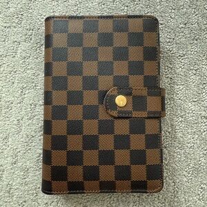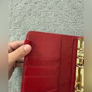 Used in good condition. Cute agenda planner to keep your life a little more organized! Has a 6-ring holder and pen holder on the inside. Has imperfection on the front gold button. Approximate measurements in photos.