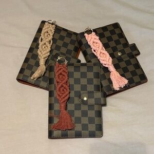 This listing is for One, Brown A6 Checkered Planner with matching brown interior. Includes 2 clear plastic cash envelopes with 2 toy cash place hold bills (not real cash)