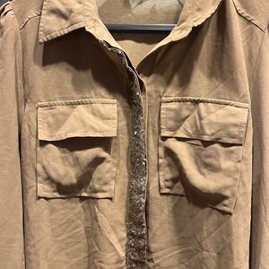 Brown Chiffon and Sequin Button Down Shirt NEVER WORN Size Small - Double Pocket Shirt