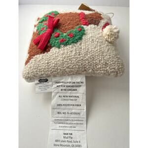 #woolpillow #browndog #christmasdog #mudpie #smallpillow #decorativepillow #wreath #redbow #santahat