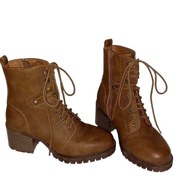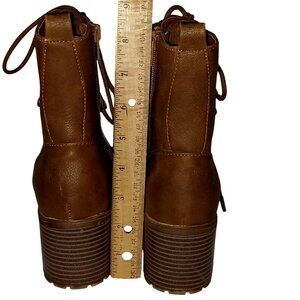 Brown Chunky Platform Lug Block Heel Lace up Zip Faux Leather Ankle Boots Wms 7