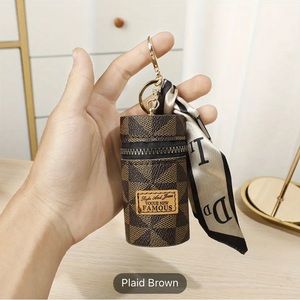 Brown Cilinder Lipstick Holder Keychain