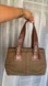 Elegant Coach bag with brown leather and canvas. Features durable fabric and classic jacquard C design. 2008 bag style #F12311