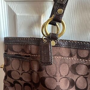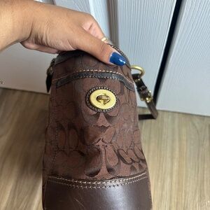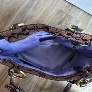 Beautiful Coach Bag perfect for the fall! Purple inside lining with gold hardware! Sad to let this one go but I need to pay my school tuition 🥲 There is some wear on the straps and discoloration throughout the outside but this is a staple purse for your coach collection!