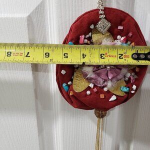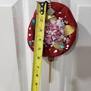 handmade coin purse, embellished mini bag, floral coin purse, rhinestone pouch, festival clutch, gift for her, unique small purse, brown satin bag, boho glam purse, colorful coin pouch