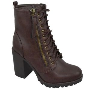 Brown Combat Lace Up Lug Sole Heel Booties Boots