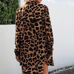 Brown Coord set Leopard Print Button Front High Low Shirt & Shorts