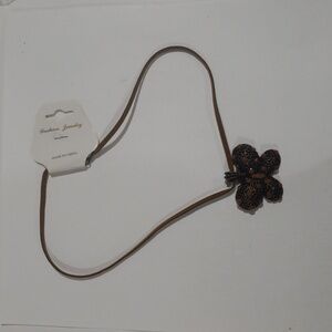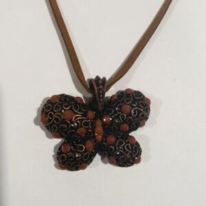 Brown Cord Filigree Butterfly Design Pendant Necklace - Women's Fashion Jewelry