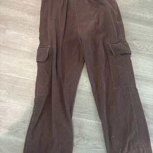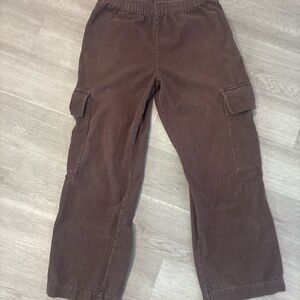 Stylish brown corduroy cargo pants with multiple pockets. Perfect for casual wear.
