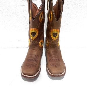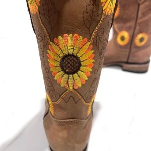 Brown Cowboy Boots with Sunflower Embroidery 5.5