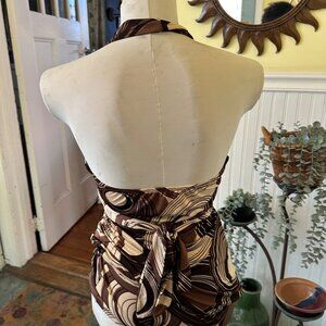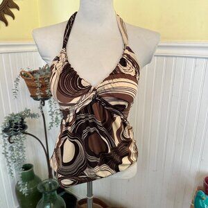 Brown & Cream Halter Tankini Top By Blue Stitch Swirled Print Adjustable Back