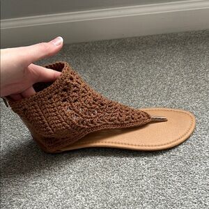 Step into comfort and style with these brown crochet sandals. Perfect for casual outings, these sandals offer a unique design and a comfortable fit.