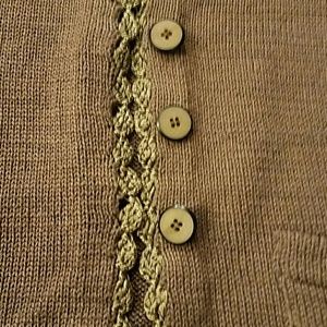 Worn a few times, one size Sweater by Bae & Castro, button up, excellent quality, one ribbon loose in photo
