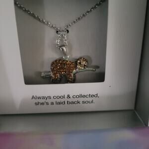 Brown Crystal Sloth Pendant Necklace 15-17" Chain in Box Silver Tone
