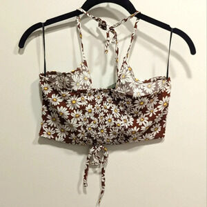 Brown Daisy Halterneck Crop Top