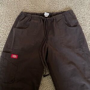 Thrifted these brown dickies pants and while back and they’re just a little too big and long for me! I cut them a little badly but you can see in the photos it’s not bad- I’m 5’4 and they’re a tad too long still. Other than that it’s definitely just a used, thrifted quality. You can totally tell that they’re meant to be work scrubs or scrubs for something but you know with the trends they could look so cute dressed up with some sneakers and a crop top. Lmk if you got any questions!