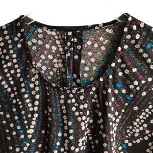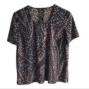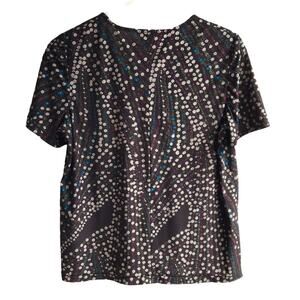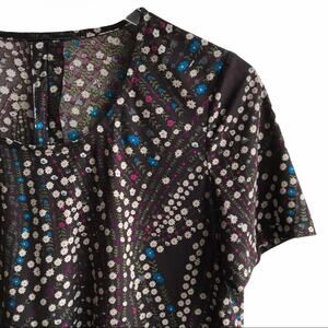 Brown Ditsy Floral Mesh Top Size M Print Short Sleeves Y2K '90s Boho Festival