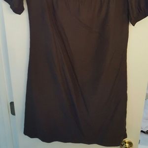 Brown short sleeve dress, hits right above knee. Button detail on the back.