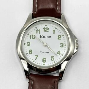 Brown Eiger Men's Watch. Fully functional with brand new batteries. Adjustable band fits 7 1/2 in wrist or near.