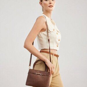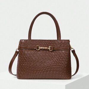 Brown Elegant Women's Crocodile Embossed Metal Buckle Handbag