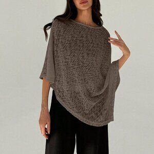 Brown Elegant Womens Off Shoulder Asymmetrical Hem Sheer Casual top