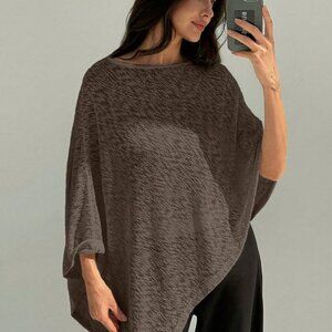 Brown Elegant Womens Off Shoulder Asymmetrical Hem Sheer Casual top