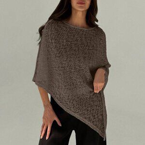 Brown Elegant Womens Off Shoulder Asymmetrical Hem Sheer Casual top