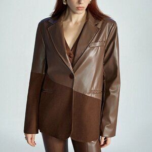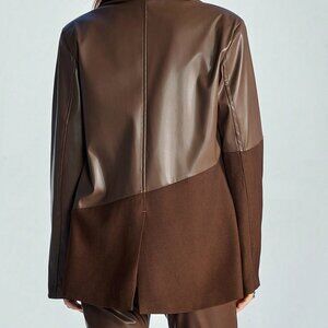 Brown Elegant Women's Style Asymmetrical Design Woven Fabric Patchwork Blazer