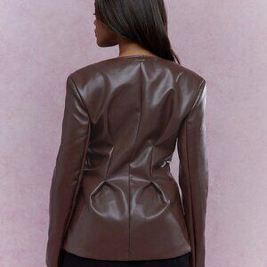 Brown Elegant Women's Woven Fabric Buttoned Collarless Pintuck Long Coat