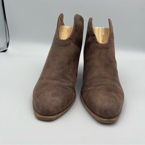 Brown Faux Leather Block Heeled Booties Women's Size 8 Ankle Boots Mule Western