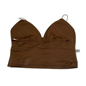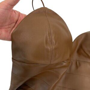 Brown Faux Leather Crop Top With Spaghetti Straps - Size M By Versona