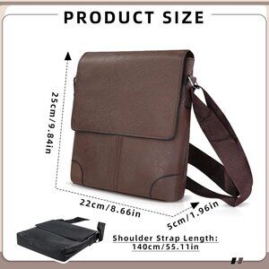 Brown Faux Leather Crossbody Bag for Men with 4 Pockets and Adjustable Strap