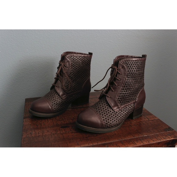 Vintage-style lace-up boots with perforated faux leather.