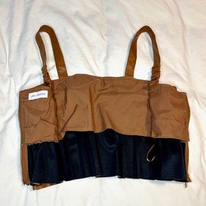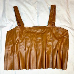 Brown Faux Leather Set the Scene Pleated Crop Tank Top