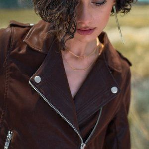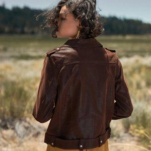 Brown Faux Suede Edgy Belted Hem Biker Jacket