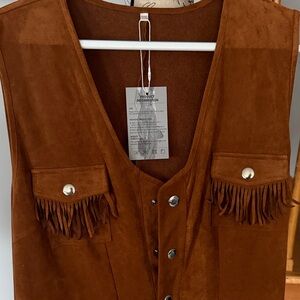 Oyrosy-Western Tassel Brown faux Suede Vest Jumpsuit. Featuring fringe accents and snap buttons. Never worn. This item is from China so sizing says XXXL, however it’s fits like a regular Large. So I am list’s a “Large”. From a smoke free home.