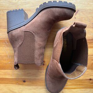 Brown faux suede heeled booties