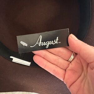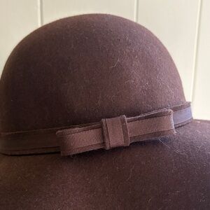 Stylish brown felt hat featuring a charming bow detail. Never worn, still has August brand store tag! Perfect condition has vintage boho charm. Circumference is 22 inch or a 6.5 Small.