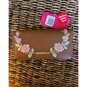Brown Floral Embroidered Zip Around Full Size Wallet NWT