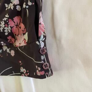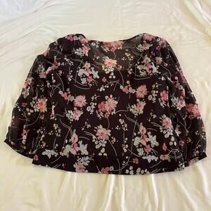 Brown Floral Sheer Ruffle Baby Doll Wrap Blouse Top Sz 6P Forest Fairy Grunge