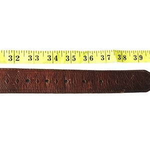 Brown Full Grain Oil Tan Leather Belt Diamond Design Size 36 B46