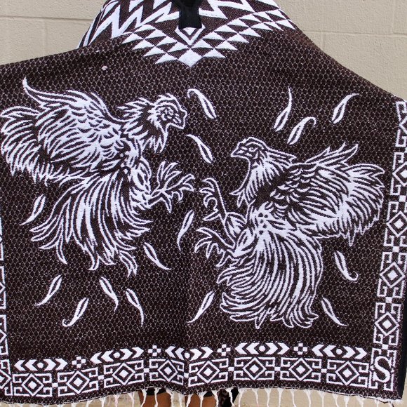 Brown Gallos poncho Rooster Poncho Gaban Poncho Mexican Jorongo de Gallos