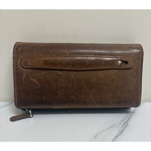 * Brown genuine leather long bifold wallet clutch