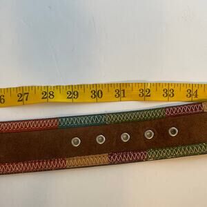 Brown Genuine Suede Leather Belt with Multcolor Trim Womens Small Wide Boho