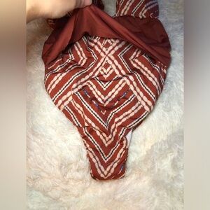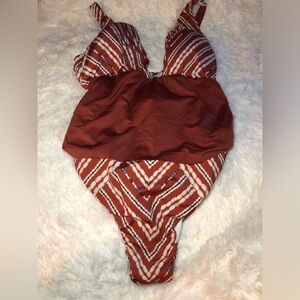 Brown Geometric One Piece Swimsuit with Plunging V-Neck