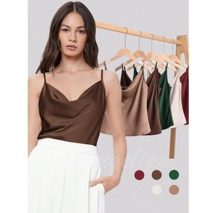 Brown Glamorous Cowl Neck Spaghetti Straps Camisole Top Cami, Draped
