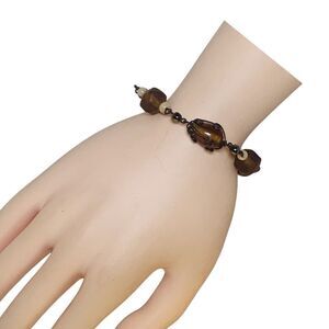 Brown Glass Beaded Bracelet 5.25” Wrapped Wire Copper Bohemian
