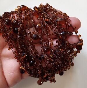 Brown Glass beaded multi stranded necklace. Approximately 16" long with a 3" extension.