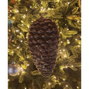 Enhance holiday decorations with this brown and gold glitter pinecone ornament. Its shimmering design adds elegance and charm to any festive setting.