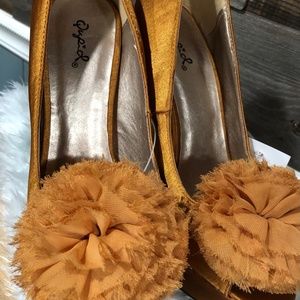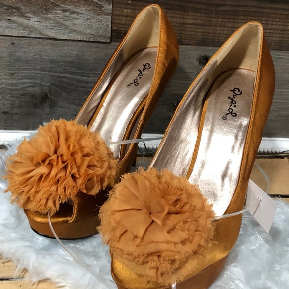 Brown Gold Mustard Colored Open Toe High Heel Dress Shoe